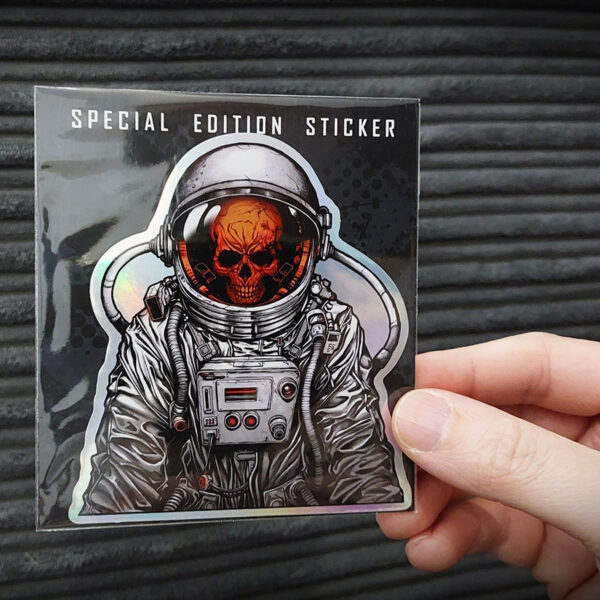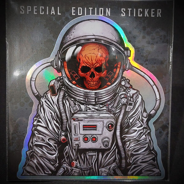 Drifting silently through the void, this astronaut’s journey has long since ended—but his story lingers. Inside the helmet, a skull stares out, all flesh lost to the cold vacuum of space. The interior glows with eerie red-orange light, casting an otherworldly glow over the remains. Surrounded by darkness, he becomes a haunting monument to human fragility and cosmic isolation. Inspired by sci-fi horror and space exploration themes, this piece blends realism with graphic, stylised details. A striking design for fans of dark space art, existential themes, and the beautiful terror of the unknown.