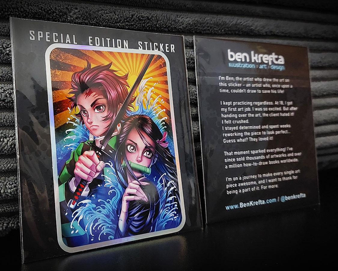 This illustrated anime inspired sticker is created by Ben Krefta- A professional artist best known for his ‘How to Draw Manga’ art books, which have sold over 1 million copies globally. He specialises in manga, comic and tattoo inspired designs and art.