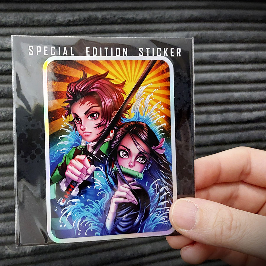 Bound by blood and unbreakable loyalty, Tanjiro and Nezuko stand together in this powerful tribute to Demon Slayer. Tanjiro’s fierce determination and Nezuko’s quiet strength are captured in every detail—from his focused gaze and Nichirin blade to her bamboo muzzle and demon-marked eyes. The composition highlights their bond: a brother willing to risk everything and a sister fighting to hold on to her humanity. Inspired by traditional Japanese art with anime flair, this piece celebrates resilience, sacrifice, and family. A must-have for fans of Kimetsu no Yaiba and emotionally charged storytelling.